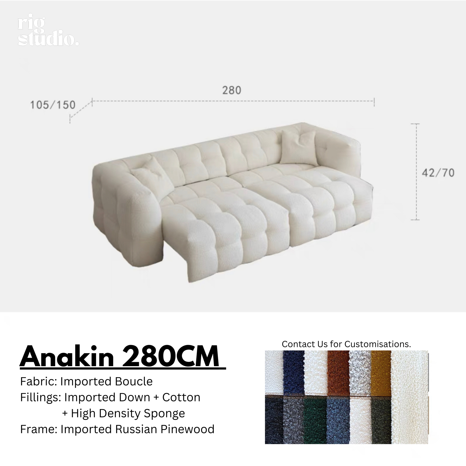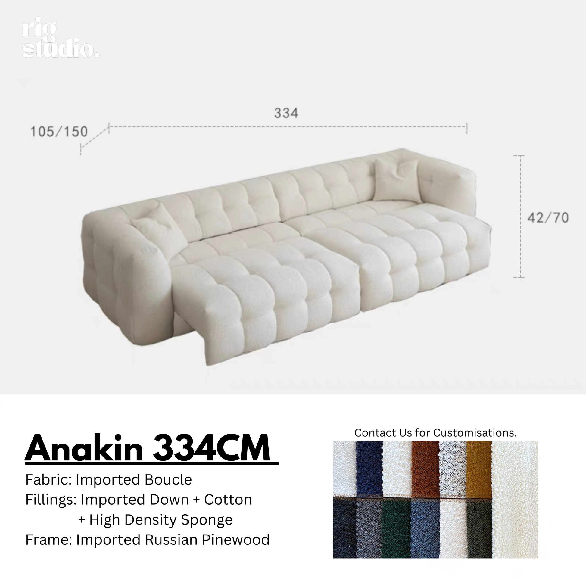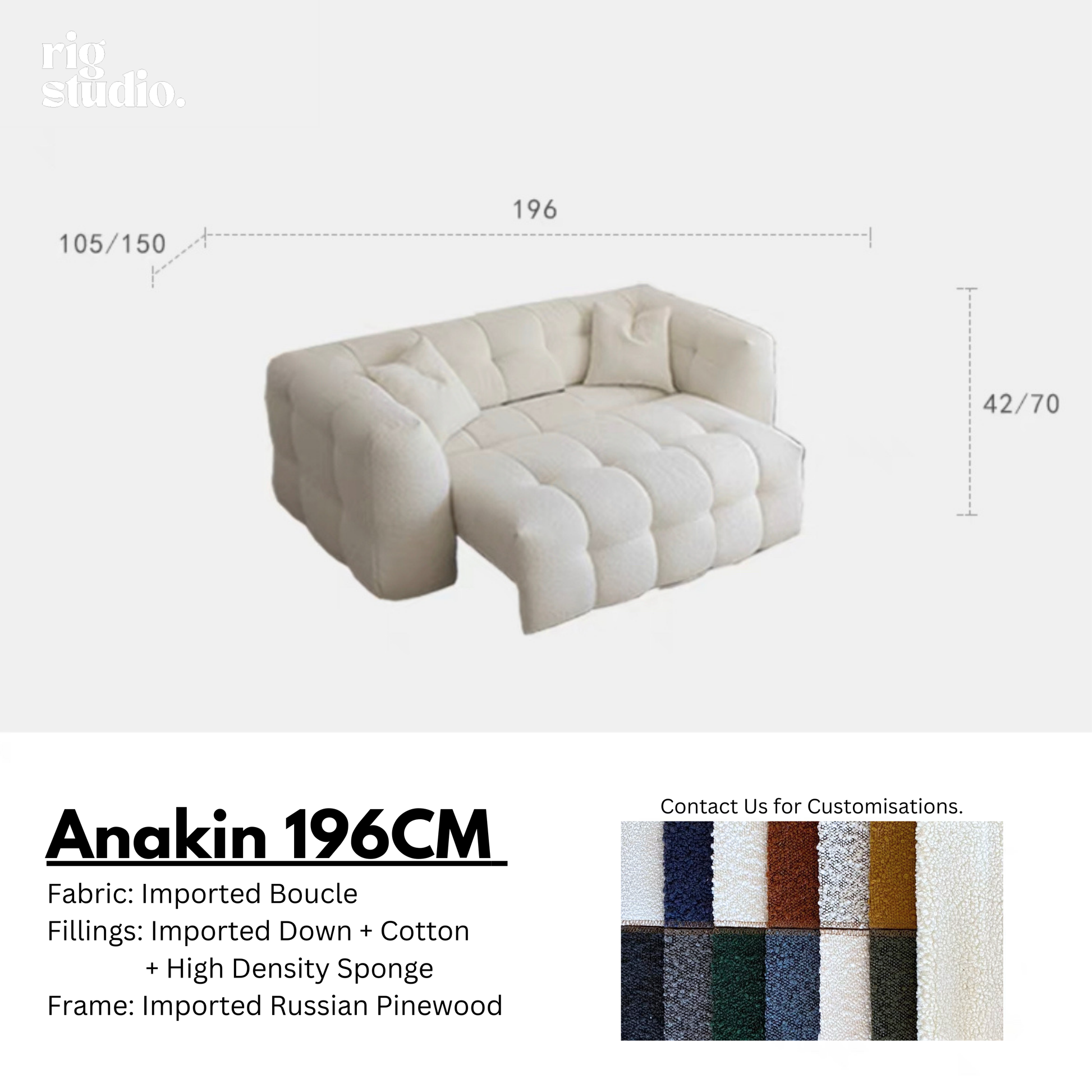 Upholstered in imported boucle fabric, known for its softness and durability, the sofa is filled with 45D high-density foam and cotton for luxurious comfort. The sofa comes equipped with reliable hardware for long-lasting performance.