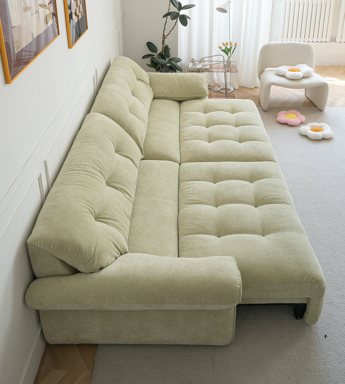 Aurora Extendable Sofa, a perfect blend of style, comfort, and functionality tailored to elevate any living space. Upholstered in luxurious chenille fabric, the Aurora offers a soft, inviting texture that can be customized to fit your aesthetic preferences. Choose from a variety of colors to create a piece that truly complements your home.