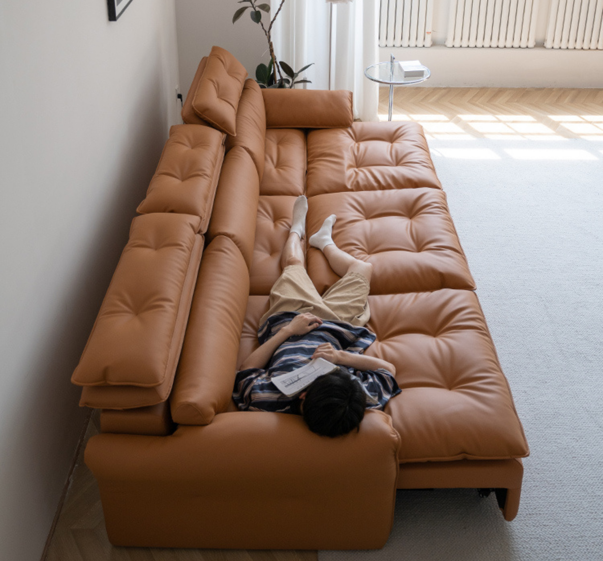 The Benjamin Extendable Sofa offers unparalleled comfort and versatility with a motorized mechanism that lets you adjust the seat depth from 55cm to 105cm using a remote control. Its contemporary design, clean lines, and robust frame ensure both style and durability.