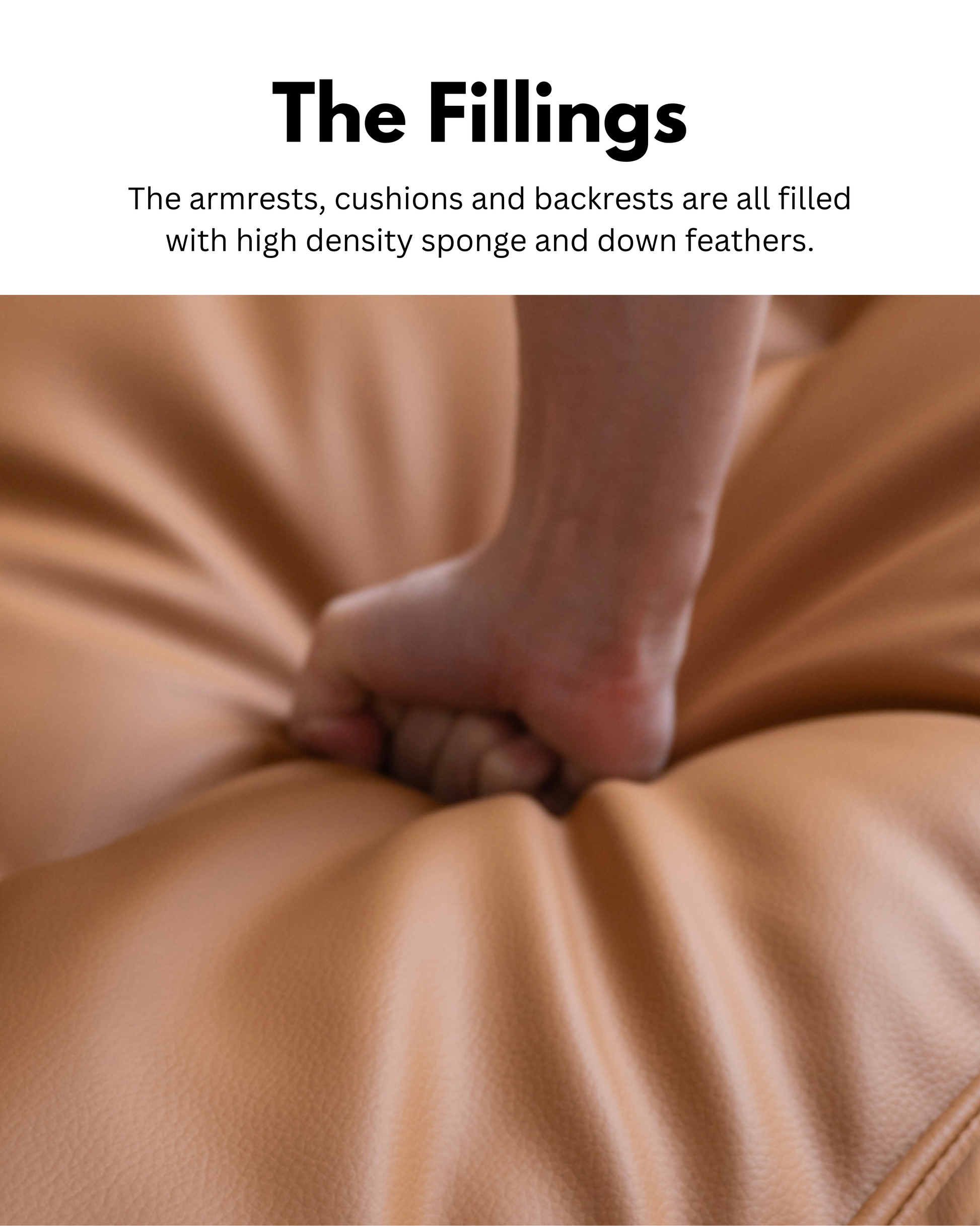 Upholstered in luxurious Eco Genuine Leather, it features 45D high-density sponge cushions and white goose down for plush support. The non-removable cover maintains the sofa's integrity, and simple maintenance keeps it looking pristine.