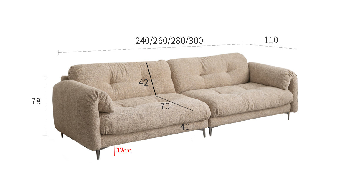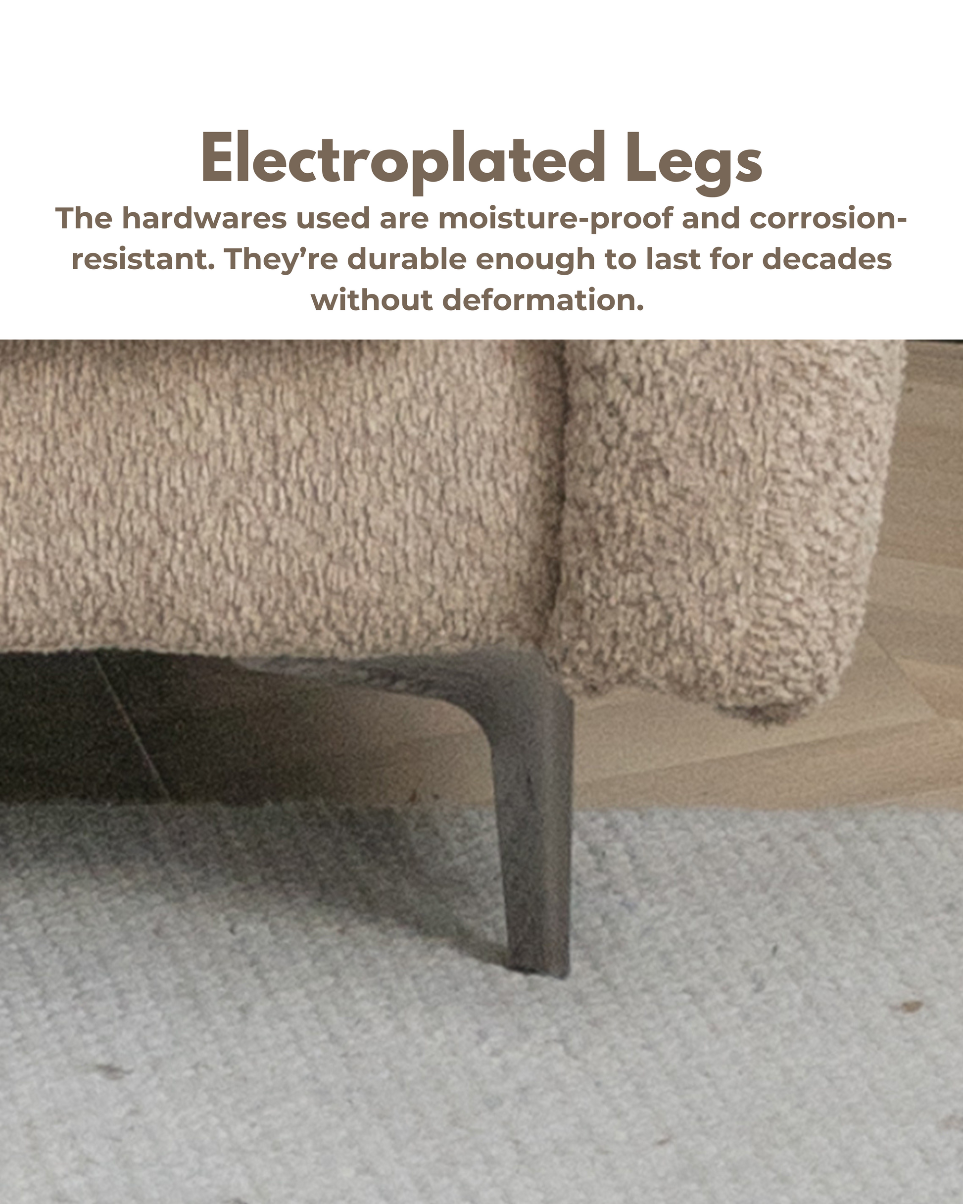 The Cinnamon Sofa combines comfort, elegance, and innovative design to redefine your living space. Upholstered in luxurious imported chenille fabric, it features a plush seating experience with 45D high-density foam and imported goose down. The sturdy pine wood frame ensures durability, while the practical steel legs make cleaning easy.