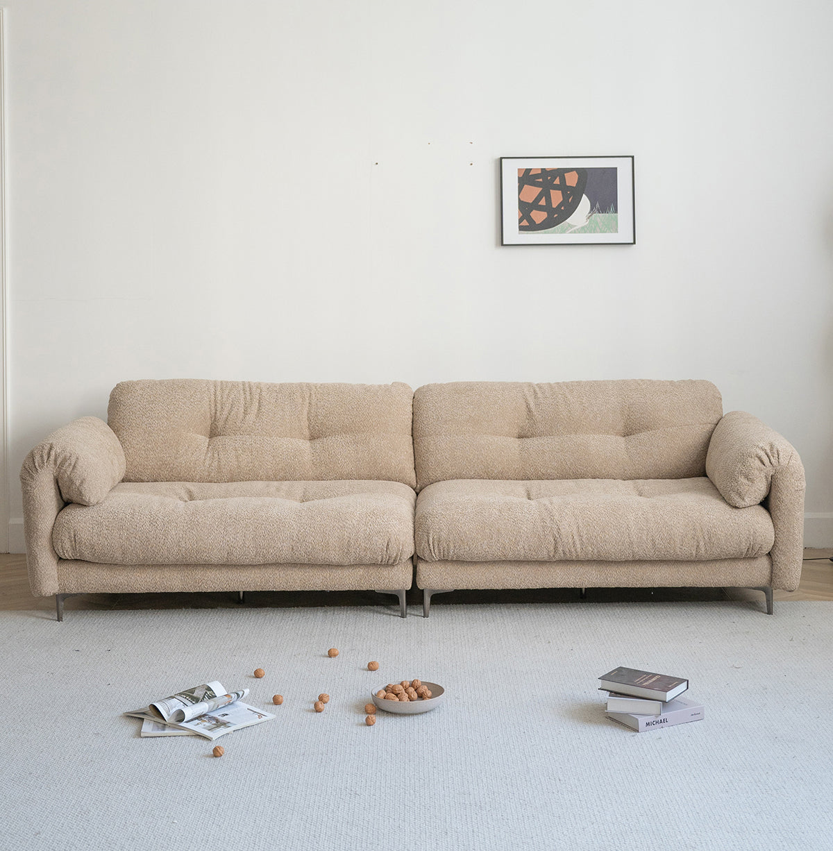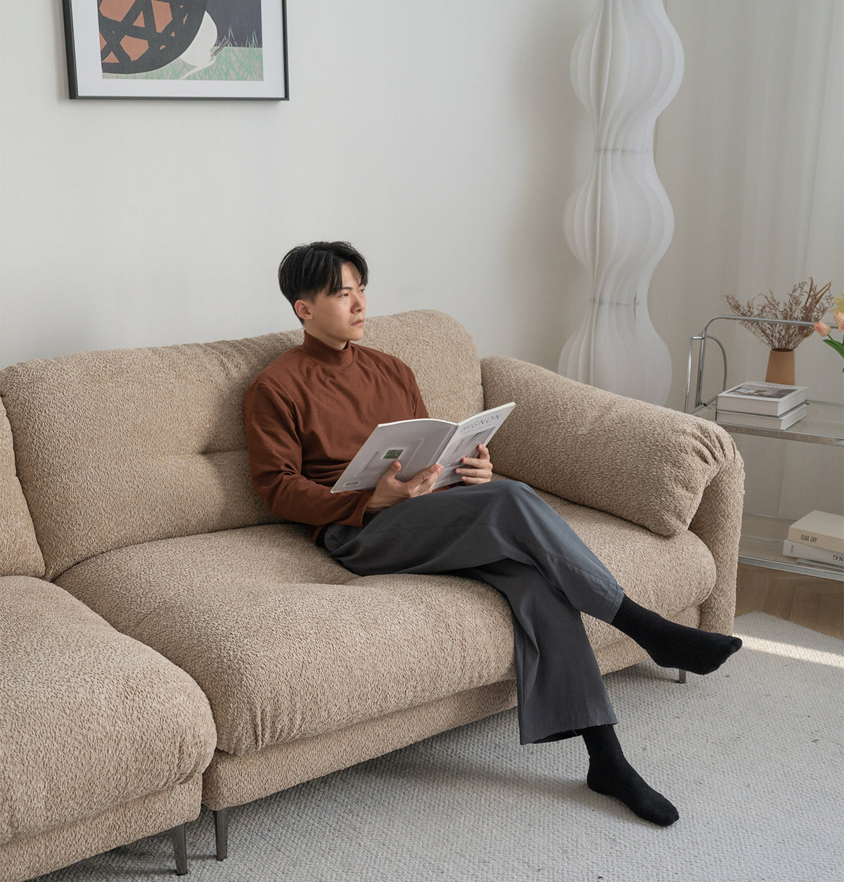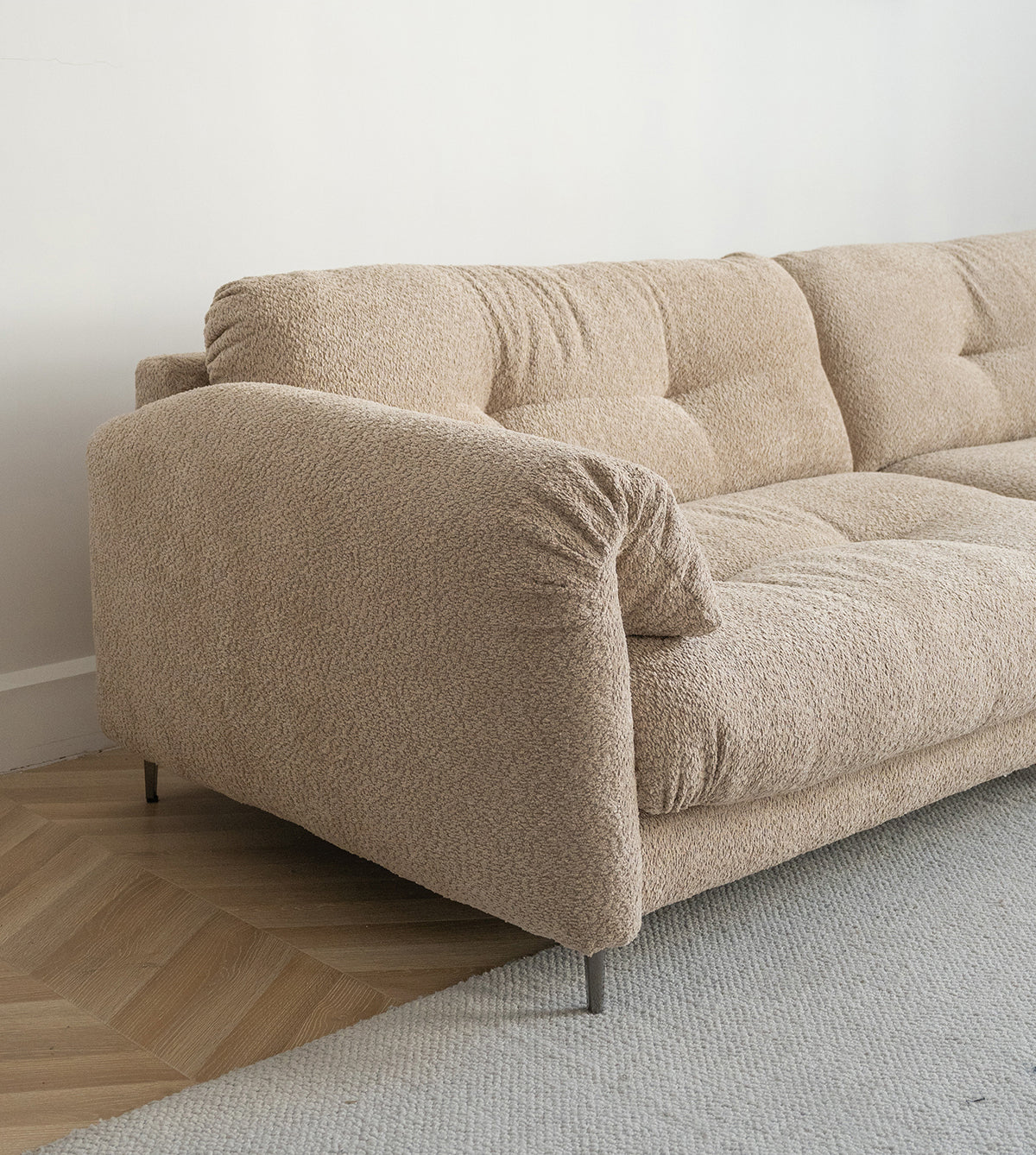 Its unique inward-curving armrests, inspired by the swirl of a cinnamon roll, add both visual appeal and extra comfort. Available in various sizes, the Cinnamon Sofa is perfect for any room, offering style, quality materials, and easy maintenance for a sophisticated and practical seating solution.