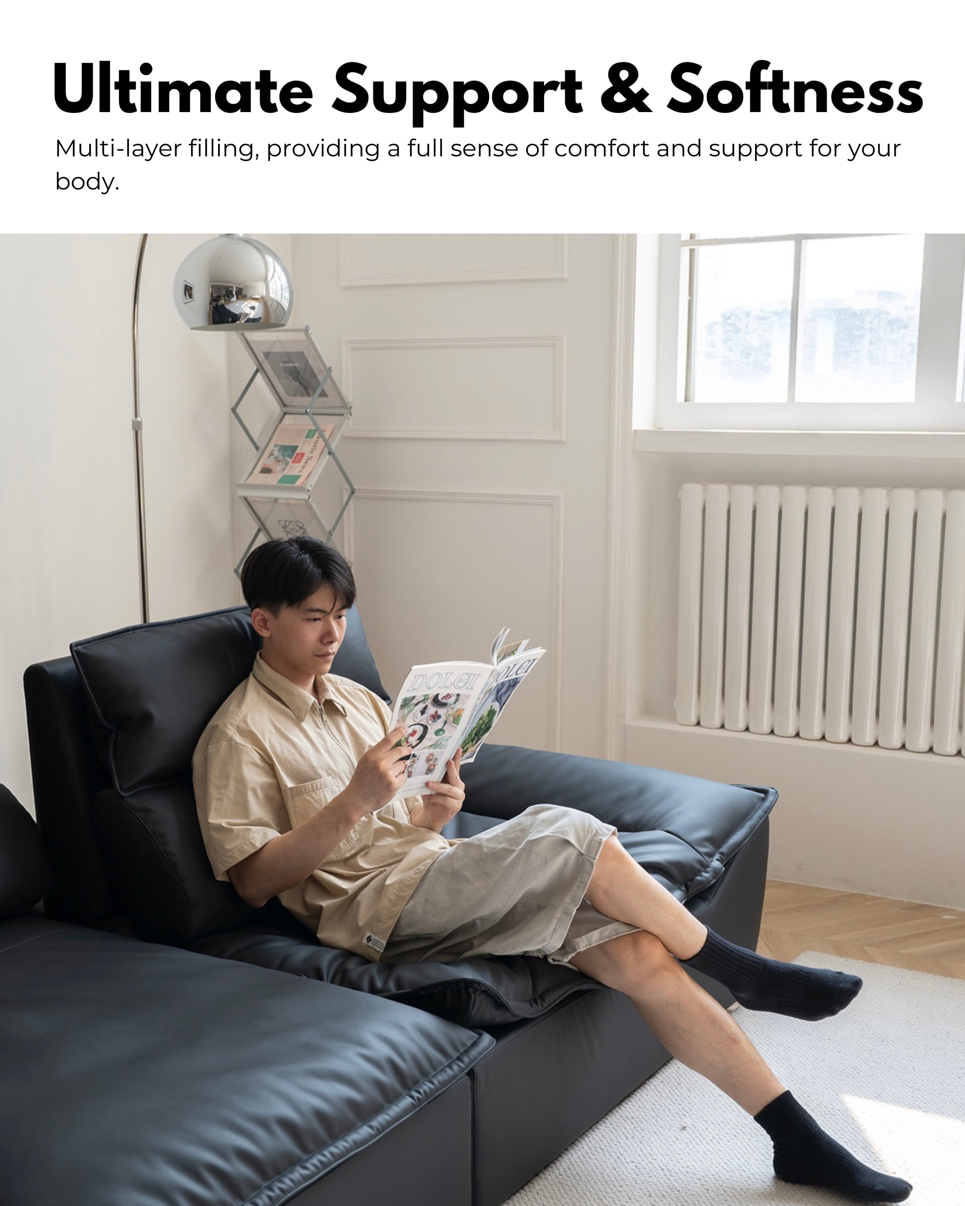The Noah Sofa seamlessly blends elegance, comfort, and versatility, featuring adjustable backrests for a personalized seating experience. Upholstered in durable silicone leather, it resists scratches, stains, and is easy to maintain—making it an excellent choice for homes with pets and children. Its hypoallergenic properties ensure a clean, allergen-free environment for all.